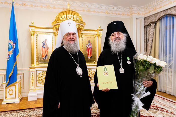 Митрополит Александр вручил высокие награды иерархам, отмечающим памятные даты. Во внимание к усердным архипастырским трудам на благо Православной Церкви Казахстана и в связи с 15-летием архиерейской хиротонии архиепископ Павлодарский и Экибастузский Варнава удостоен ордена преподобноисповедника Севастиана Карагандинского; Управляющий делами Митрополичьего округа епископ Каскеленский Геннадий – ордена святителя Софоний, архиепископа Туркестанского и Ташкентского, просветителя Семиречья. За усердные архипастырские труды и в связи с 30-летием священного сана архиепископ Кокшетауский и Акмолинский Варсонофий награжден орденом преподобномучеников Серафима и Феогноста.