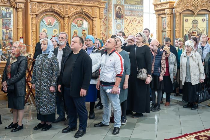 За Литургией молились: настоятельница Иверско-Серафимовского женского монастыря игумения Любовь (Якушкина) с сестрами обители; настоятельница Свято-Троицкого Никольского монастыря города Ташкента игумения Екатерина (Мальгина), секретарь Православной Церкви Казахстана, Заслуженный деятель искусств Российской Федерации, регент хора Казахстанского Митрополичьего округа, член Патриаршего совета по развитию русского церковного пения О.Н. Овчинников; руководитель представительства Россотрудничества в Республике Казахстан М.С. Симакова, студенты Алма-Атинской православной духовной семинарии, сотрудники отделов и комиссий Митрополичьего округа, сотрудники Алма-Атинского епархиального управления; прихожане алма-атинских храмов и многочисленные паломники.