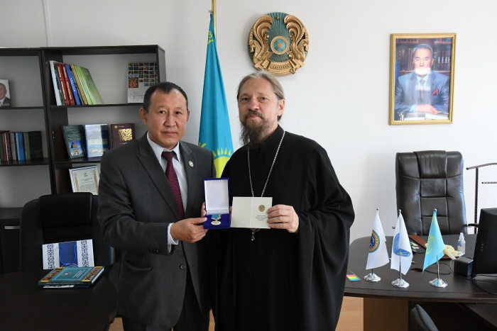 В офисе коммунального государственного учреждения «Қоғамдық келісім» аппарата акима Южной столицы епископ Каскеленский Геннадий был награжден юбилейной медалью «Қазақстан халқы Ассамблеясына 25 жыл» (25 лет Ассамблеи народа Казахстана).