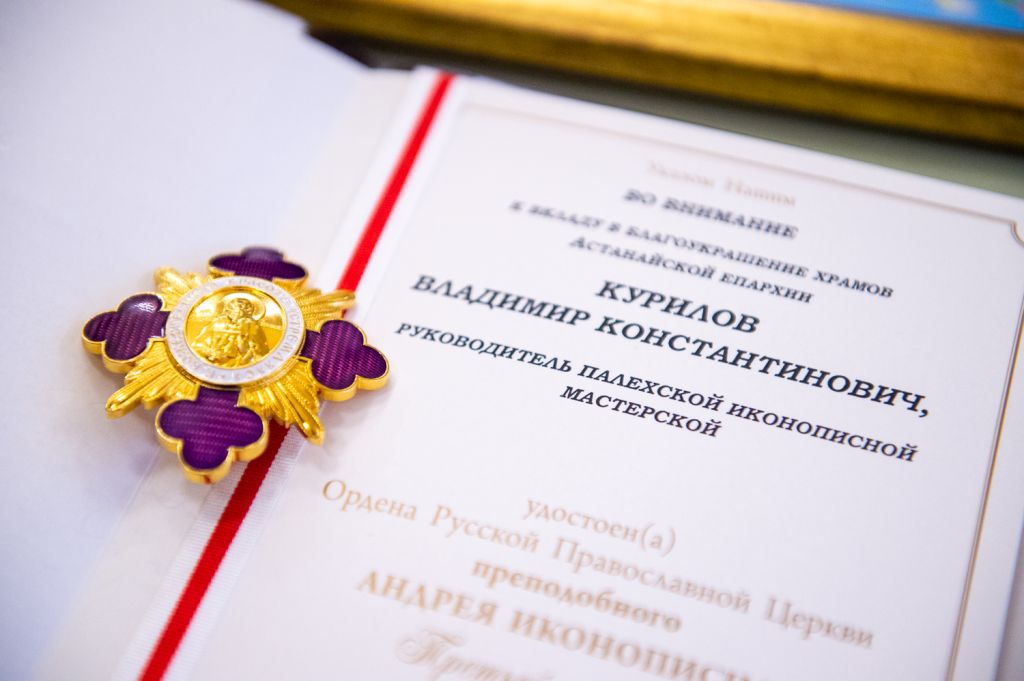 Орден Андрея Иконописца был учрежден определением Святейшего Патриарха Алексия II и Священного Синода Русской Православной Церкви 17 февраля 2001 года в ознаменование 2000-летия Рождества Христова. В соответствии со статутом орденом награждаются иерархи Русской Православной Церкви и других Поместных Православных Церквей, высшие государственные и должностные лица, священнослужители и миряне, способствующие украшению православных храмов; клирики и миряне за труды в области иконописи, церковного зодчества, преподавательскую деятельность в области иконописи и церковно-археологических дисциплин, издание книг по церковному искусству, благотворительную деятельность, направленную на украшение храмов, часовен, иных церковных помещений, и деятельность, направленную на возвращение Церкви похищенных икон и предметов церковного искусства.