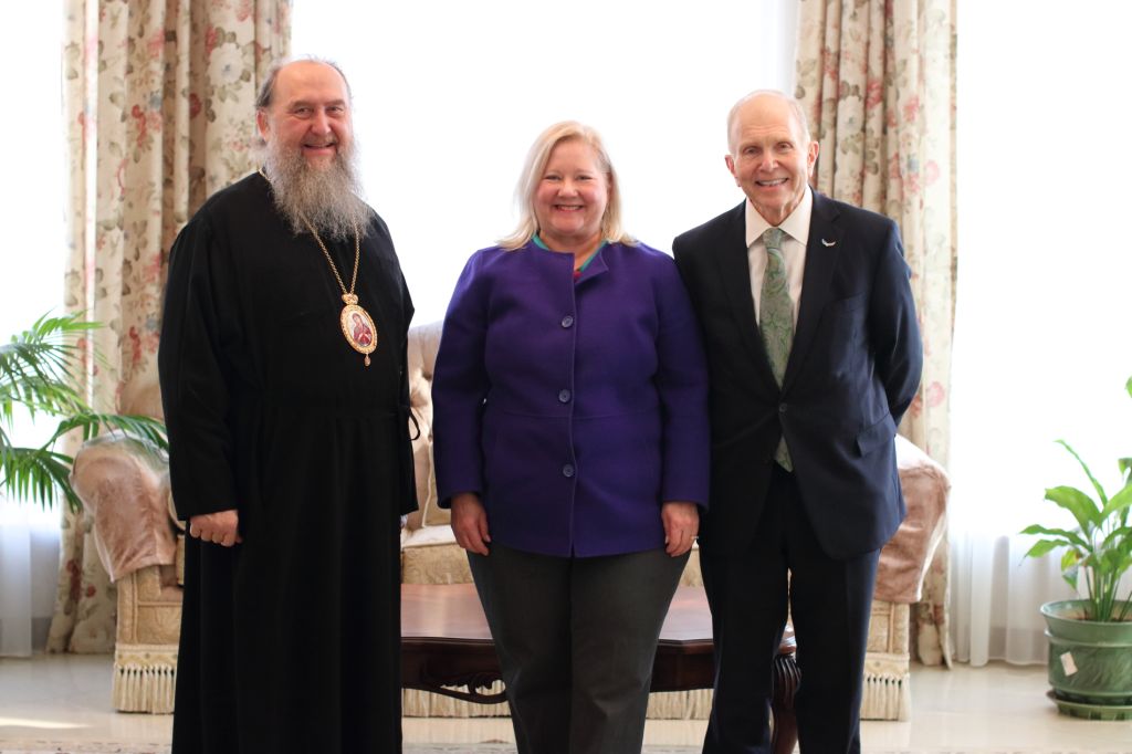 После экскурсии по собору в резиденции Главы Православной Церкви Казахстана посла США с супругой принял митрополит Астанайский и Казахстанский Александр.