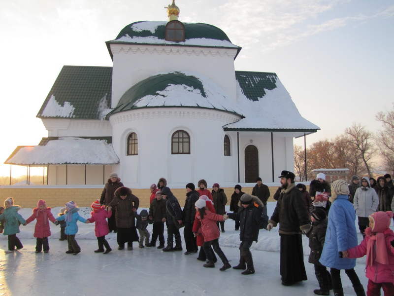 После концерта Рождественский праздник продолжился на улице, на территории Стефаниевского храма, где помимо Вифлеемского вертепа была установлена елка и залит каток, сооружена большая ледяная горка на радость ребятне.
