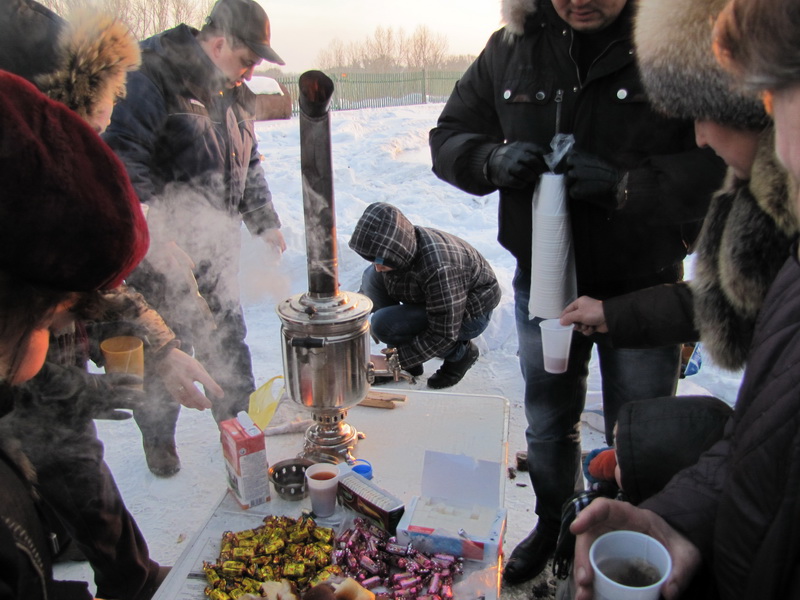 Для желающих согреться и подкрепить свои силы был организован горячий чай из настоящего русского самовара с булочками и конфетами. Так что расходиться никто не хотел, несмотря на крепчающий к вечеру морозец.