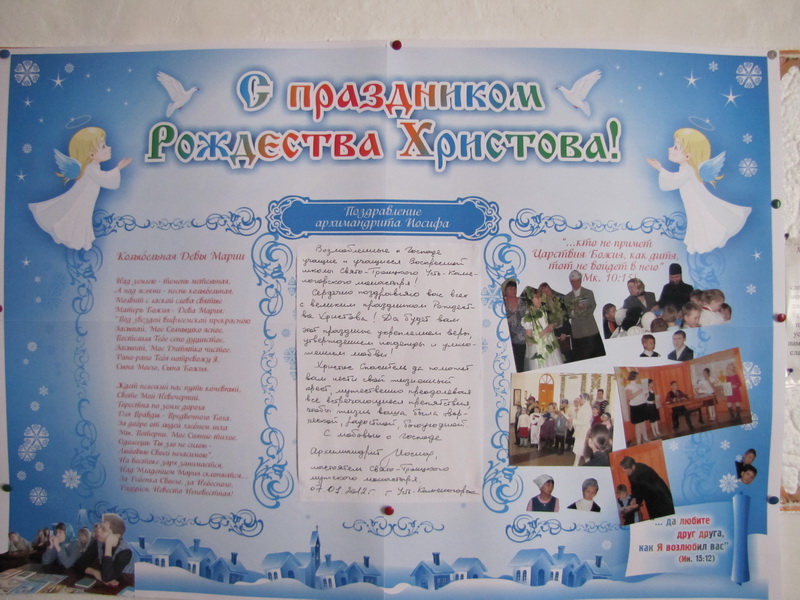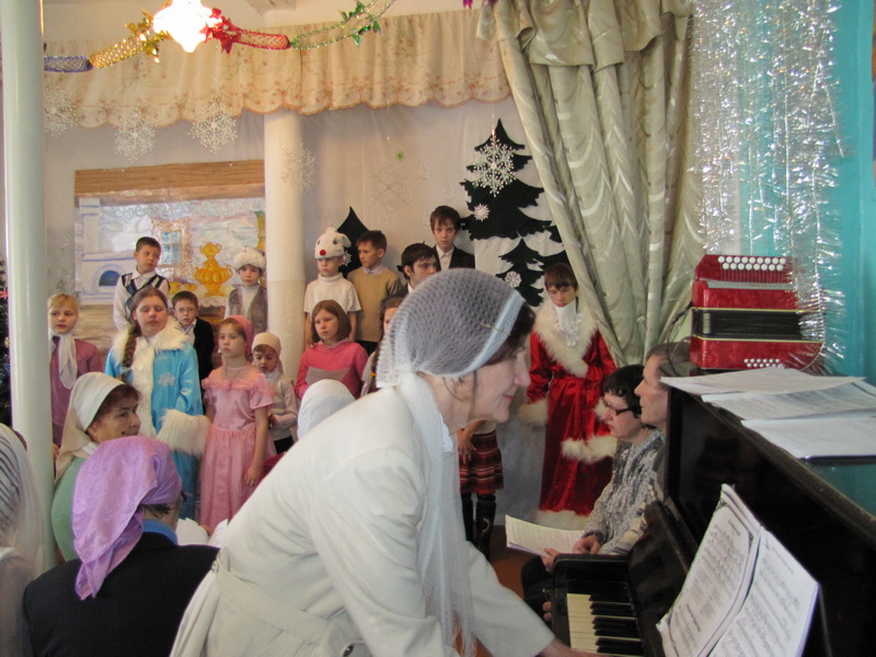 Сначала выступили дети из Воскресной школы Свято-Троицкого мужского монастыря, они показали Рождественскую сказку о том, как жил на свете злой Дед Мороз, который только всех морозил, кому нос, кому уши, кому руки или ноги заморозит, пока не узнал, что в Рождественскую ночь на земле родился Богомладенец Иисус Христос – Спаситель мира и что все в эту ночь дарят Новорожденному Христу и друг другу подарки. Тут и Деду Морозу стало стыдно, и он расщедрился и вместе со своей внучкой Снегурочкой подарил детям красивую елку.
