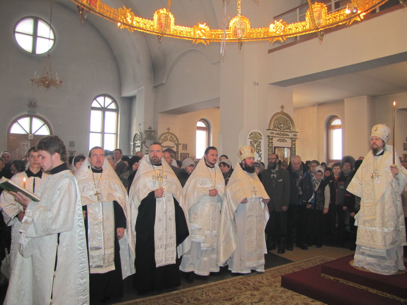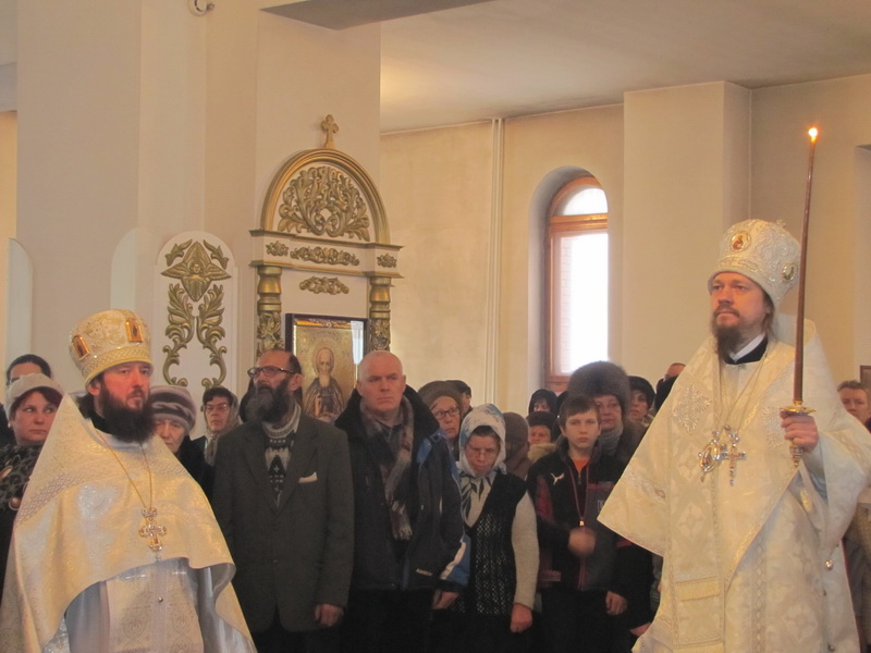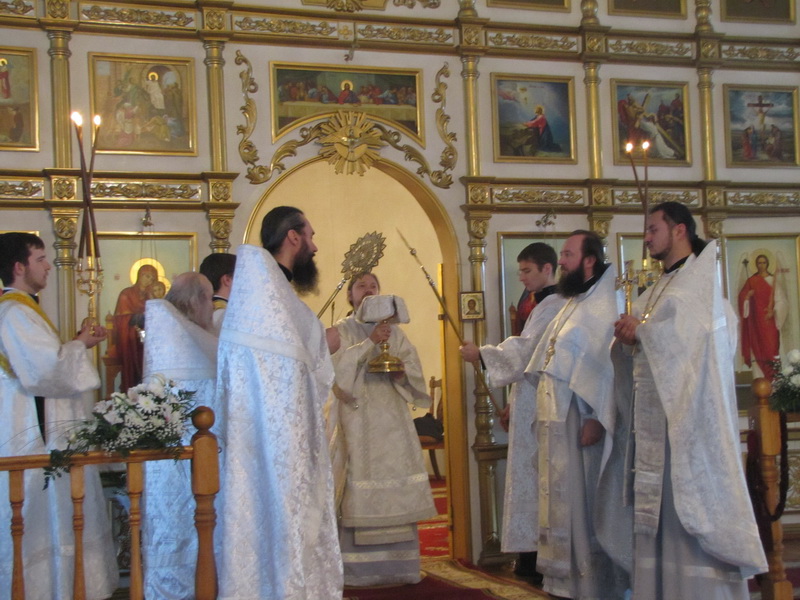 Преосвященному Владыке сослужили: архимандрит Амфилохий (Бондаренко), избранный епископом Усть-Каменогорским и Семипалатинским, руководитель молодежного отдела Казахстанской Митрополии игумен Филипп (Моисеев), клирики Астанайской и Усть-Каменогорской епархий, в том числе игумен Спиридон (Теплухин), иеромонах Никодим (Авдеев), иерей Алексий Клепиков, настоятель Покровского храма иерей Алексий Анищенко, настоятель Богородице-Рождественского храма пос. Асу-Булак иерей Роман Подрезов.