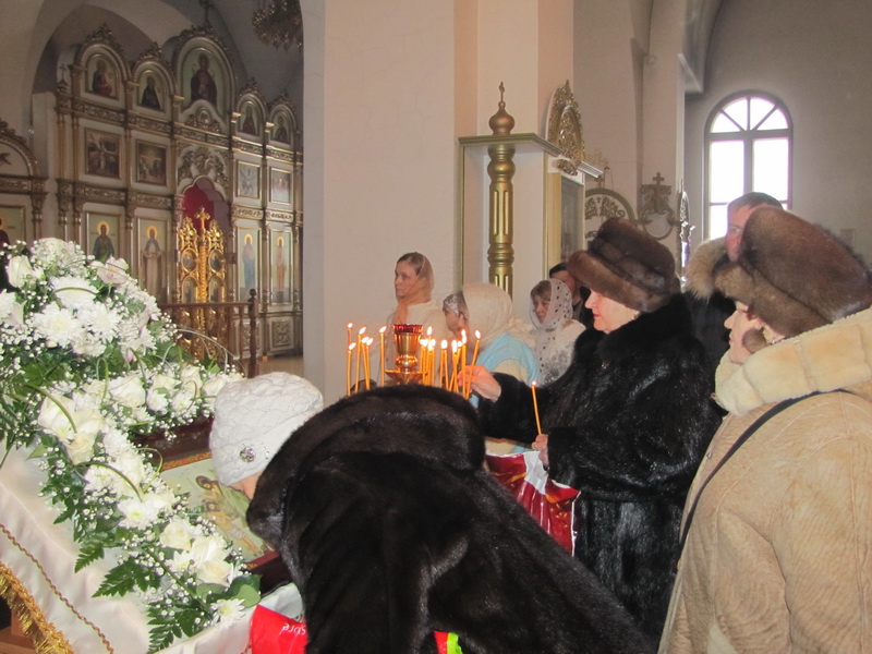 Несмотря на сильнейший мороз, в этот день за богослужением в храме было полно народу, да и в течение дня люди шли непрерывным потоком: помолиться за своих родных и близких, поставить свечи и унести с собой домой великую святыню – крещенскую воду.