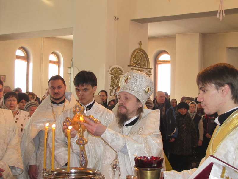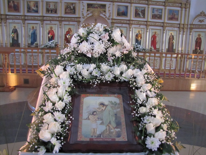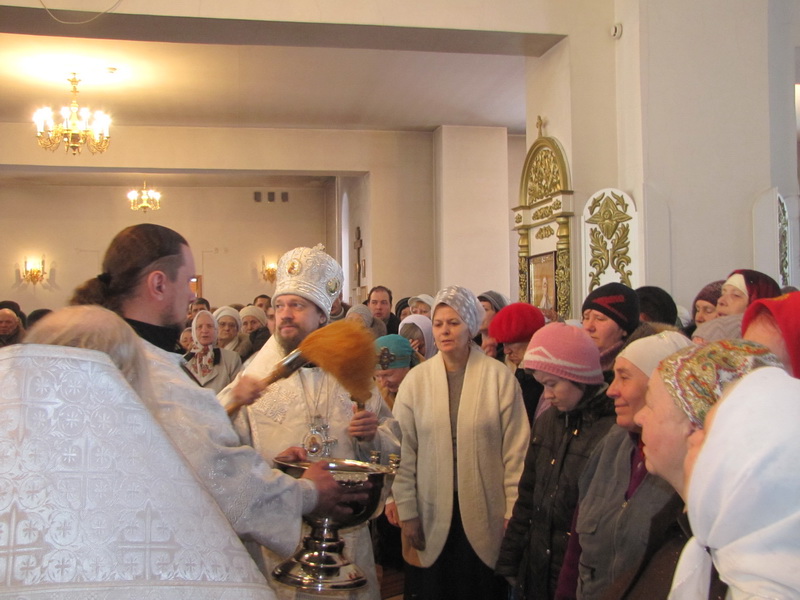 По окончании Божественной Литургии Преосвященный епископ Геннадий в сослужении духовенства совершил чин Великого освящения воды, после которого окропил молящихся великой агиасмой, а затем обратился к собравшимся с проповедью, посвященной празднику Святого Богоявления.