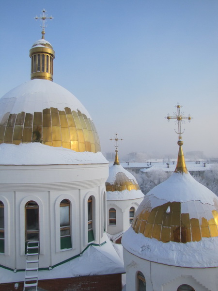 Для этого на территории Свято-Троицкого мужского монастыря рядом с Андреевским кафедральным собором была установлена ледяная купель, из которой все желающие в течение дня могли почерпнуть целебной водички.