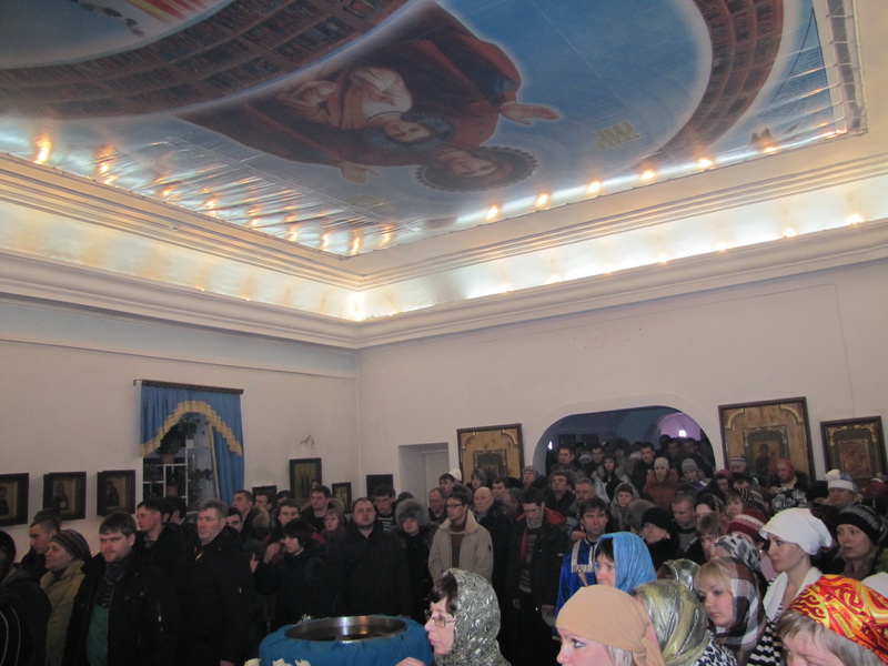 К 23.00 ч. храм был уже переполнен людьми, которые все прибывали и прибывали. Свободного места не было даже в притворе.