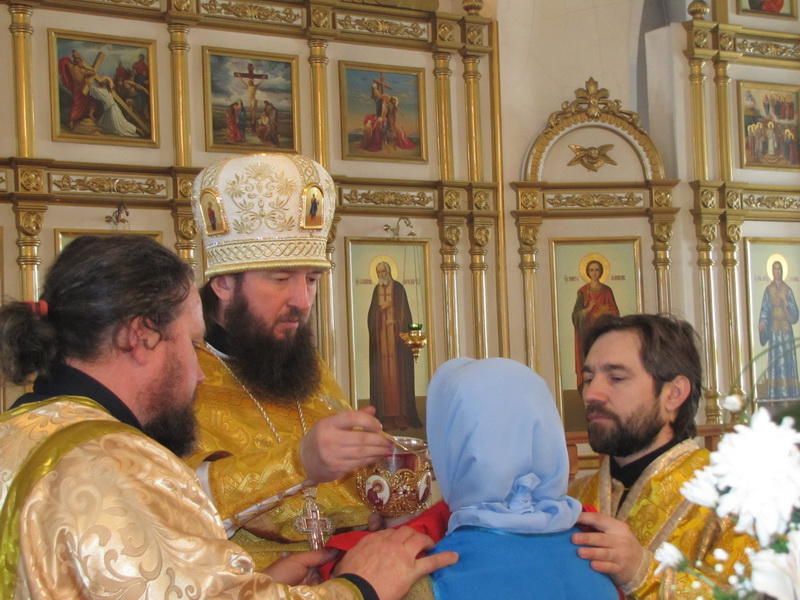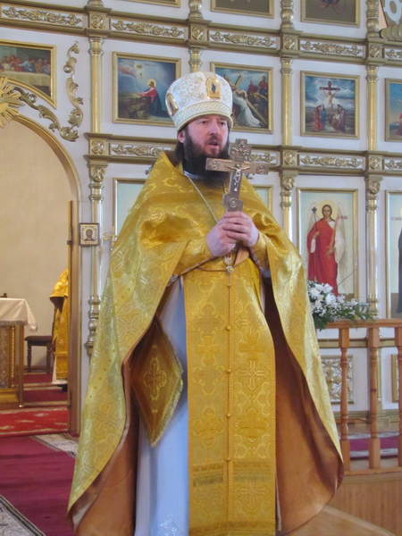 На запричастном стихе иерей Алексий Клепиков зачитал слово на Евангельскую тему, посвященное попразднству Святого Богоявления, Крещения Господня.
