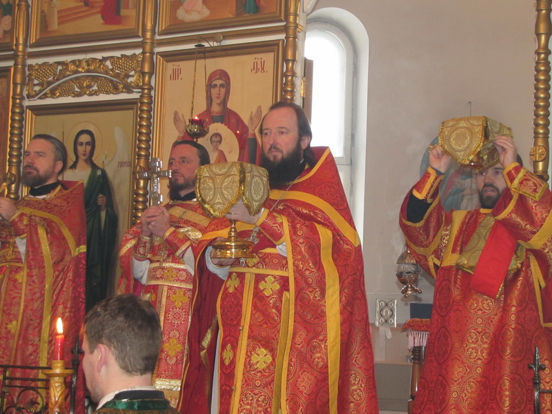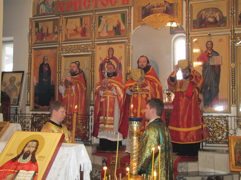 Ему сослужили настоятель Покровского храма иерей Алексий Анищенко, клирик Покровского храма иерей Игорь Шагидевич, а также клирики Усть-Каменогорской епархии.