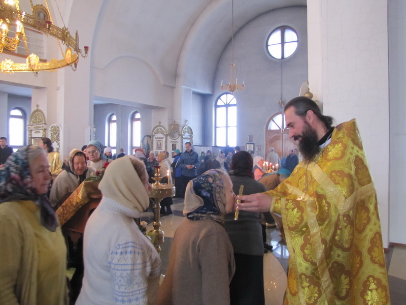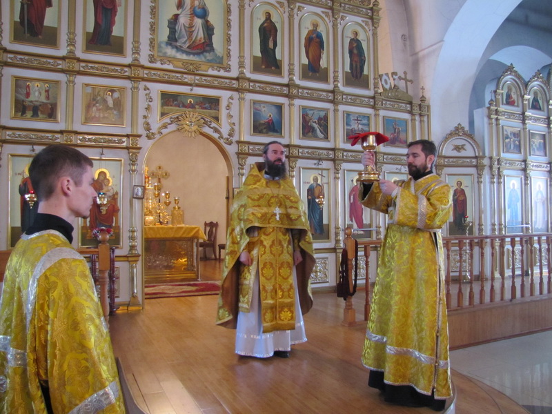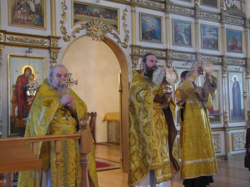 По окончании Божественной Литургии отец Никодим обратился к молящимся с проповедью, посвященной памяти трех великих учителей и святителей Церкви Христовой Василия Великого, Григория Богослова и Иоанна Златоуста, а также толкованию Евангельской притчи о блудном сыне.