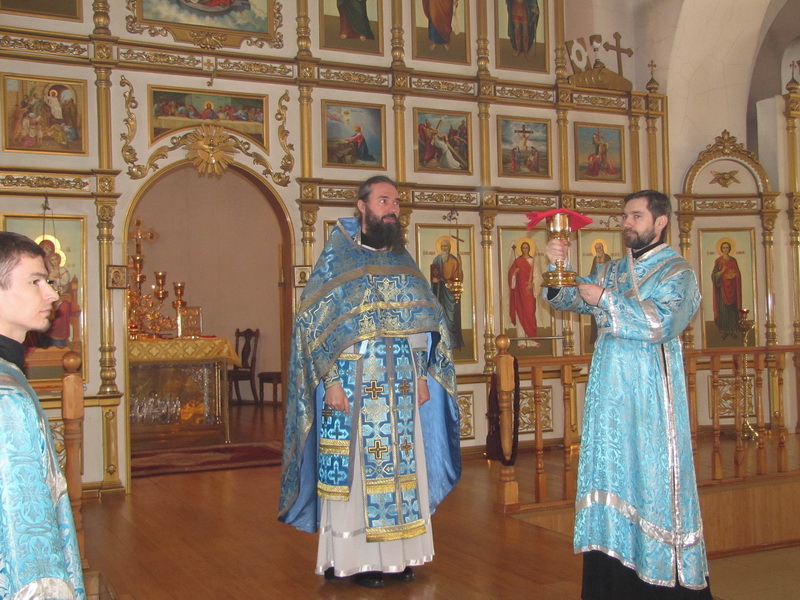 По окончании Божественной Литургии состоялся водосвятный молебен, затем был прочитан акафист Иверской иконе Божией Матери.