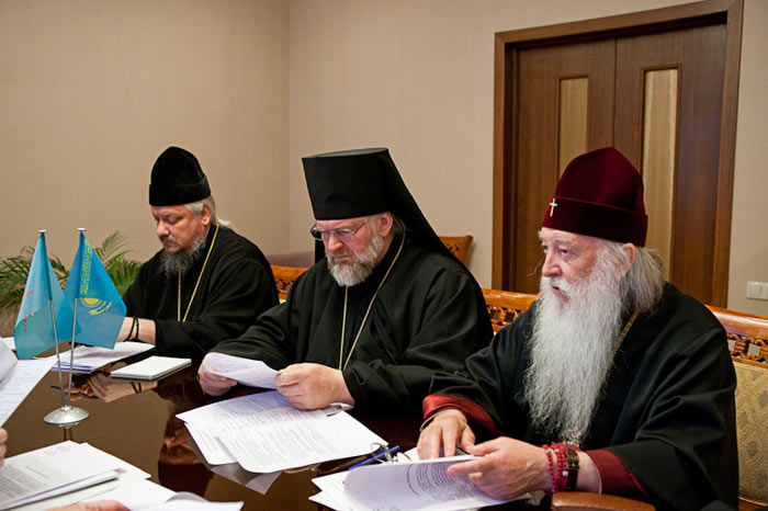 Помимо регистрации приходов и епархий, епископат Православной Церкви Казахстана обсудил детали проведения торжеств, посвященных 140-летию учреждения Туркестанской епархии, а также организационные вопросы, связанные с предстоящим визитом Святейшего Патриарха Московского и всея Руси Кирилла в Астану 29-30 мая 2012 года.