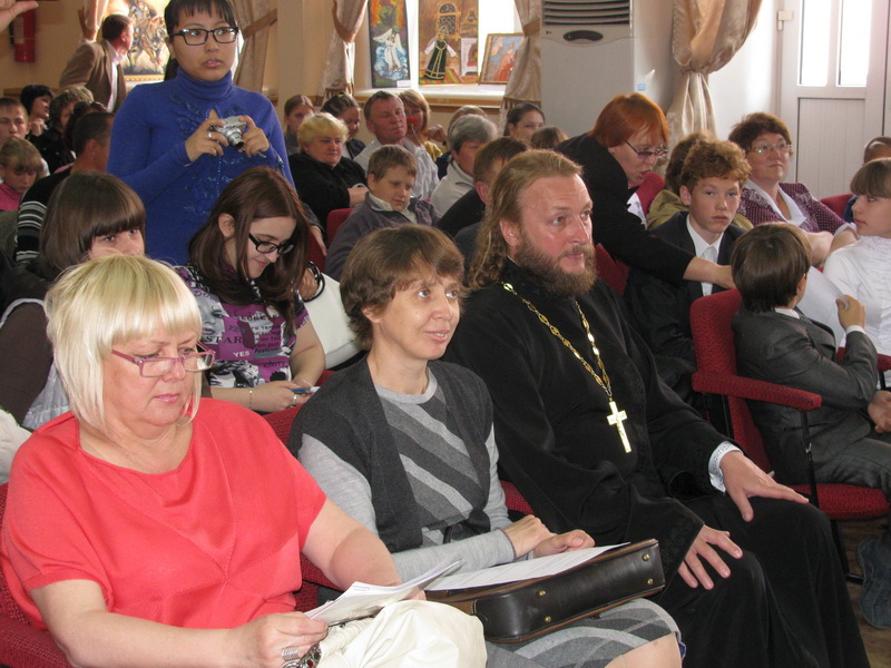 По благословению Преосвященнейшего Амфилохия, епископа Усть-Каменогорского и Семипалатинского, участие в данном мероприятии принял настоятель Богородице-Рождественского храма священник Евгений Яганов, который поздравил присутствующих с приближающимся праздником Днем славянской письменности и культуры и отметил его особую роль в воспитании духовности и благочестия среди детей и молодежи, в деле укрепления веры, сохранении дружбы и единства между народами.