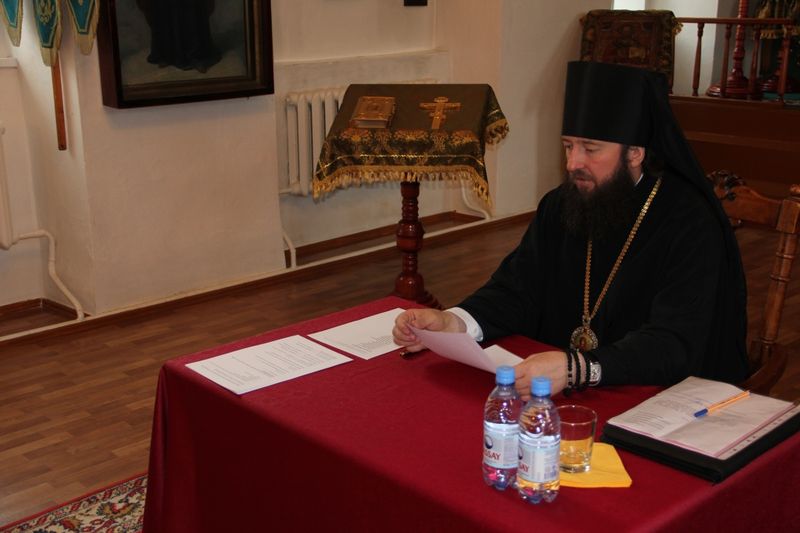 Открыл собрание Преосвященный епископ Амфилохий, обратившись к его участникам с приветственным словом, в котором поздравил всех с днем памяти блаженной Ксении Петербургской, началом работы собрания и огласил причину его созыва.