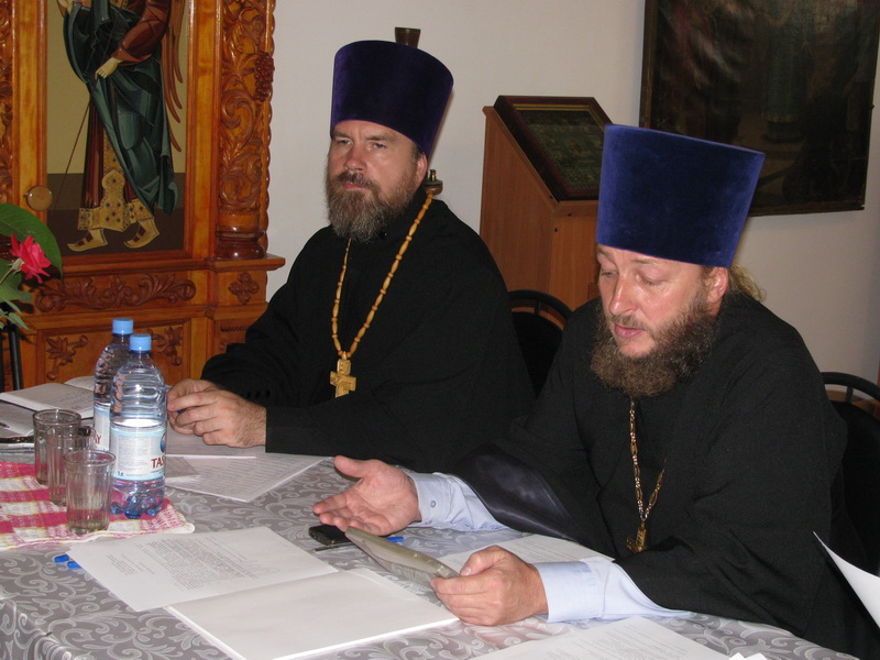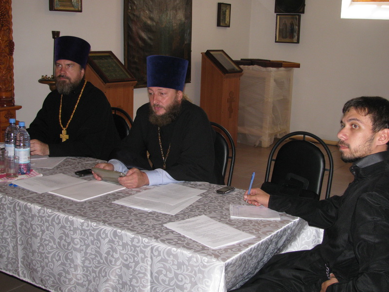 После молитвы перед началом всякого доброго дела, перед собравшимися выступил председатель собрания - и.о. секретаря Епархиального управления иерей Евгений Яганов с предложениями о том, как организовать работу в отделах Епархиального управления, как осуществлять планирование и отчетность работы.