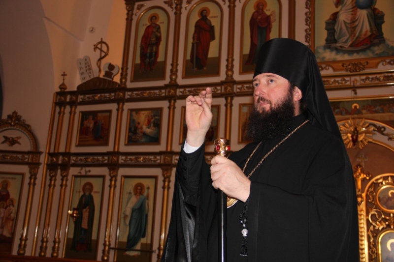 После окончания богослужения Преосвященный Владыка обратился к собравшимся с проповедью: «Словом мира и любви приветствую вас, всечестные отцы, братья и сестры. Сегодня мы молились в этом святом храме и слышали Слово Божие. Господь всех нас призывает изменить свою жизнь, изменить не внешне, но внутренне, изменить так, чтобы жизнь наша была похожа на единое общение с Богом, на столько, на сколько мы в силах сделать это. И если нет в нас сил человеческих, то Господь дарует нам силы духовные, ибо то, что не возможно человеку, возможно Богу. И мы, немощные и смиренные Его рабы, знаем это, но не всегда стараемся исполнять Его заповеди, не всегда стараемся быть добрее, чище, не всегда бываем милосердны. То время, которое мы могли бы посвятить Богу и делам милосердия, мы часто посвящаем самим себе. Человек, который посвящает свою жизнь Богу и исполняет Его святые заповеди, чувствует Его приближение, чувствует Его участие в жизни, Его руку помощи и отеческую заботу. Очень многие из нас с вами испытали на себе помощь Божию, испытали заступничество Пресвятой Владычицы Богородицы, испытали радость общения с Богом и Его святыми. Но, наверное, никто так не испытывал эту радость, как человек всецело отдающий себя воле Божией, у которого нет ничего своего и нет ничего для себя, который живет только лишь для Бога, для Церкви Божией, для спасения своей души, делает добро единому от малых сих, а значит делает для Бога. Господь Бог не нуждается в наших подаяниях, в них нуждаются наши ближние, которые часто находятся в нищете, голоде и холоде. Единая цель, к которой призывает нас Господь – это чистая, искренняя любовь к Богу и ближнему. А человек порой творит очень много дел, но далече отстоит от Бога. Про таких людей Сам Господь говорит: устами своими чтут Меня, а сердце их далеко от Меня отстоит. И если ты, человек, согрешил, то покайся, прими на себя хитон смирения и ризу, которая будет сковывать твои желания и похоти, будет давать возможность творить Божье дело, ибо всякий человек, облеченный в хитон правды будет следовать по пути, который уготовал Ему Господь… », - сказал Преосвященный Владыка в своей проповеди.