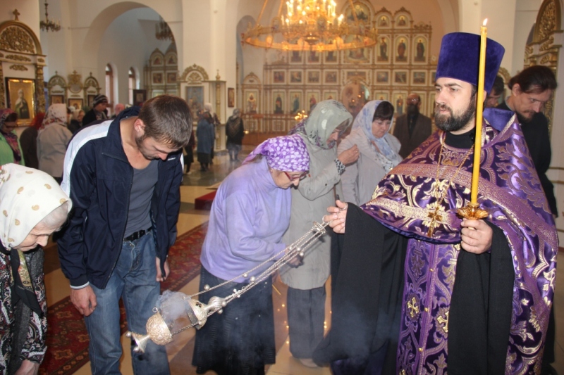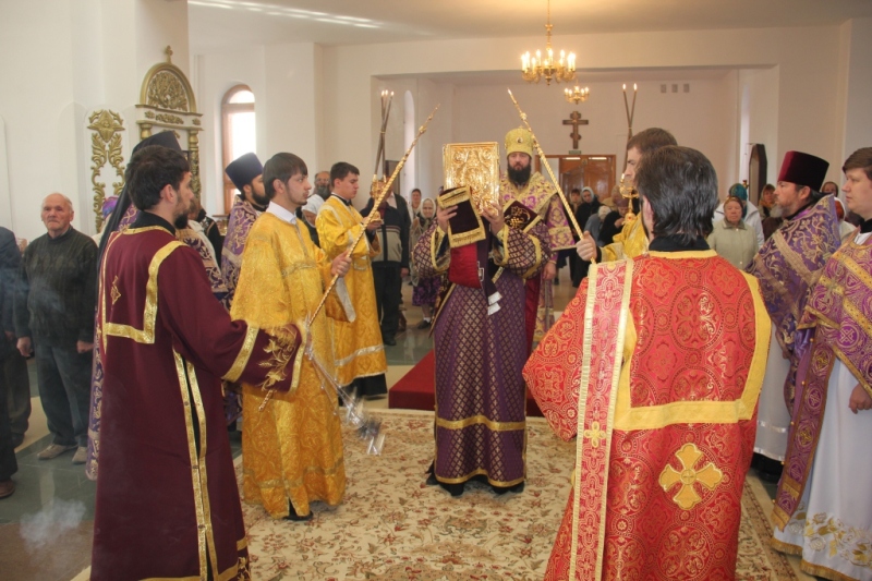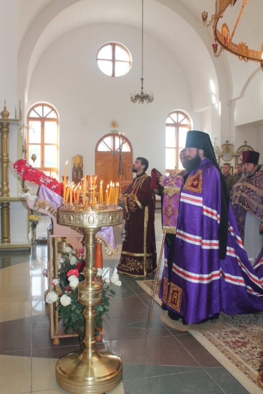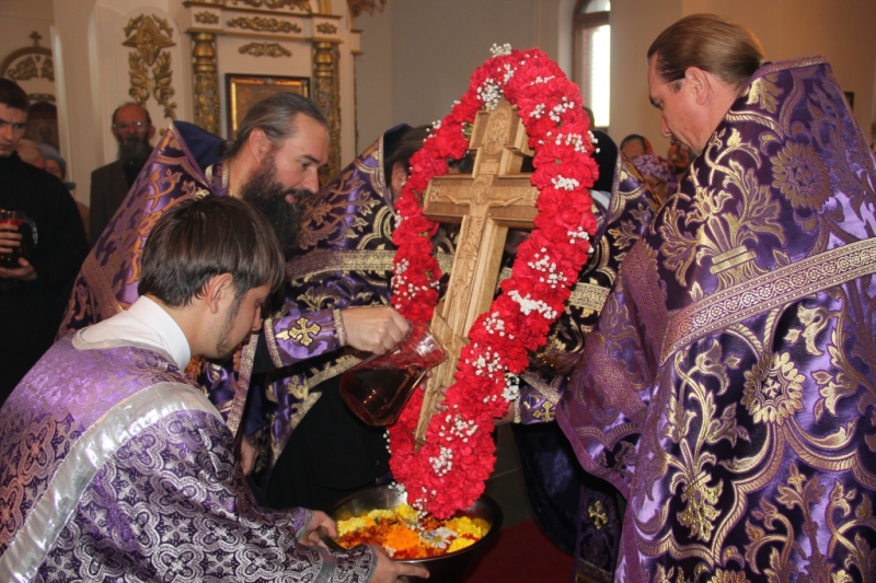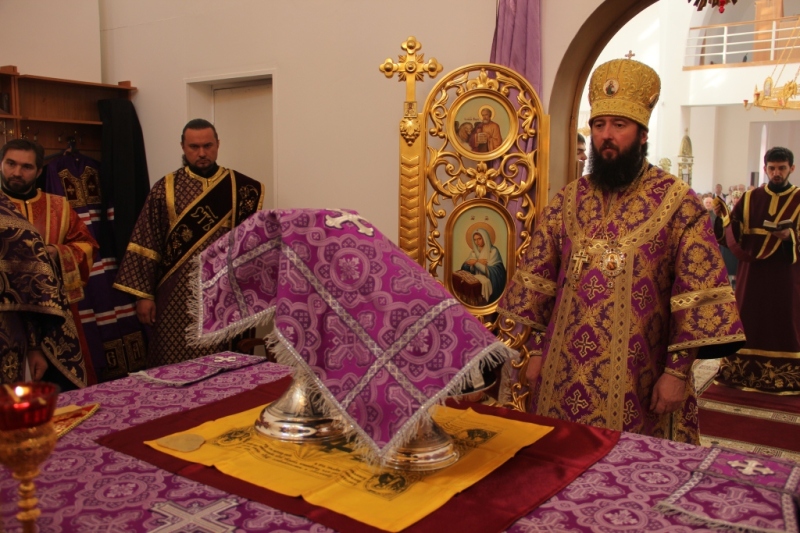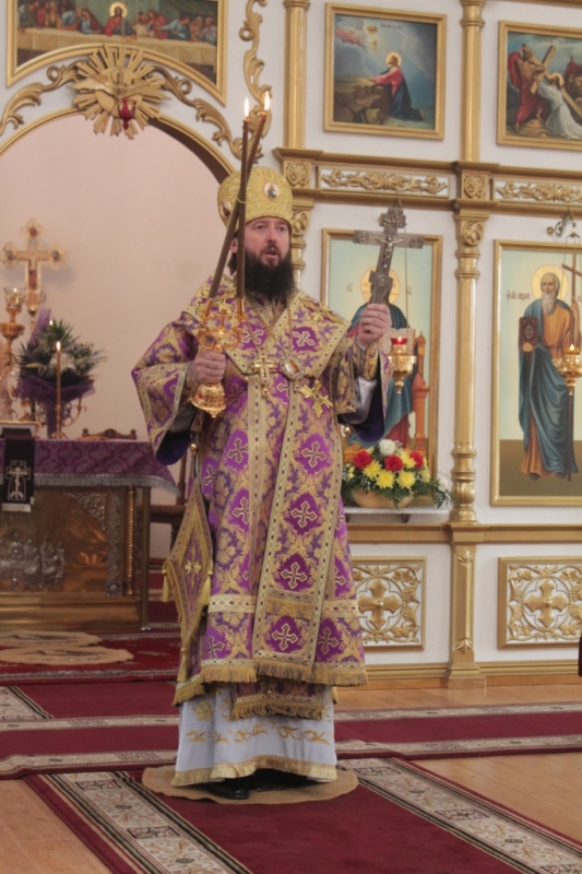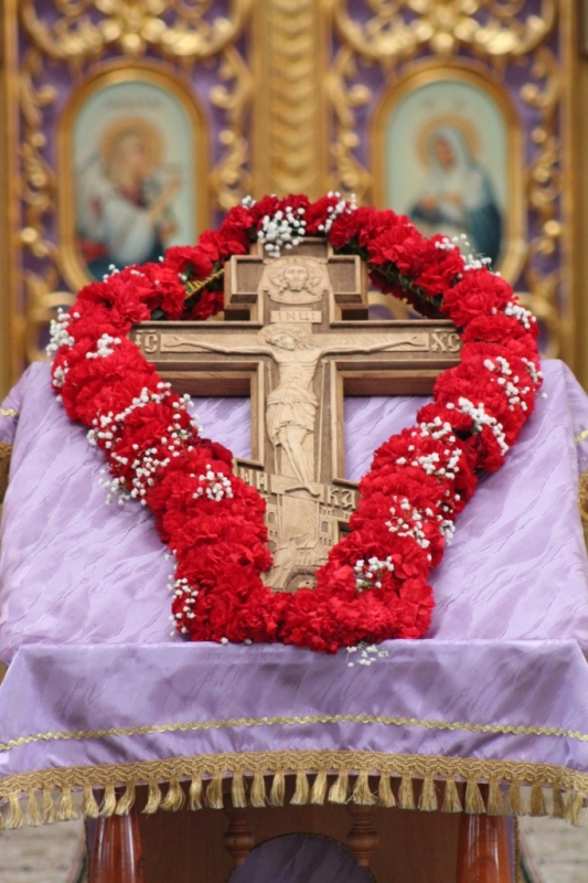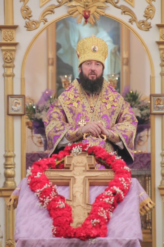 «Сегодня, в день Воздвижения Честнаго и Животворящего Креста Господня мы собрались в этом святом храме, чтобы воздать честь, славу и похвалу Животворящему Древу, которое приняло на себя Сына Божия, во искупление всех наших грехов. На Древе Крестнем Спаситель мира распростер Свои Пречистые руки так, как будто бы в отеческие объятия принимает весь род человеческий, и готов объять весь мир своей безграничной, безмерной отцовской любовью. В сегодняшний праздничный и торжественный день мы вспоминаем слова праздничного тропаря, который слышали сегодня - Кресту Твоему поклоняемся Владыко... Мы поклоняемся Кресту Господню, который есть всем верным во спасение, а безумным и неверным в погибель. Всякий взирающий на Крест Христов видит и чувствует страдания нашего Господа, которые Он претерпел нас ради и нашего ради спасения. Крест, украшенный славою Божией является орудием спасения мира, орудием для каждого человека, потому что всякий человек, взявший на себя крест есть воин Христов. Крест – подобие меча духовного, крест – великая сила. На нем пролилась Кровь Богочеловека, по древнему пророчеству, омывшая наши грехи, грехи наших прародителей, всех людей, которые когда-либо жили или будут жить. Кровью, смертью и воскресением Христовым мы получили освобождение от древнего проклятия, греха и смерти. Если тогда крест был орудием казни, позора, унижения и смерти, то сегодня Крест Христов стал орудием славы, орудием спасения рода человеческого. Воздвигнем же и мы, братья и сестры, самих себя от древнего заклятия, от плена и сна духовного, взбодримся, стрясем с себя одежду ветхую и тленную. Мы уже не ветхие человеки, а новые, рожденные во Христе Иисусе Господе нашем. Мы не должны жить как будто бы в спячке или анабиозе, мы должны проснуться, избавиться от греха, облачится в новые ризы спасения. Разбудим же себя через взор на это Древо Крестное, увидим страдания Господа, Его Кровь, и услышим смех стоящих рядом и кричащих - распни, распни Его. Как часто и мы, подобно им, своим безразличием, духовной немощью берем в свои руки гвозди и вбиваем их в Пречистые руки Господа. Когда же мы прекратим быть христоубийцами, когда мы начнем жить по совести, когда мы научимся говорить правду, когда же перестанем лукавить перед Богом и перед людьми, когда научимся строить свою жизнь по заповедям Христовым? Событие, которое мы сегодня чествуем, должно сподвигнуть нас на честное крестоношение по нашей жизни. Если мы приняли на себя крест, не важно, в мирском или духовном чине, то будем нести его честно, без ропота. Ибо нам дано время на земле для исправления нашей жизни и для спасения души», - сказал Преосвященный Амфилохий в своей проповеди.
