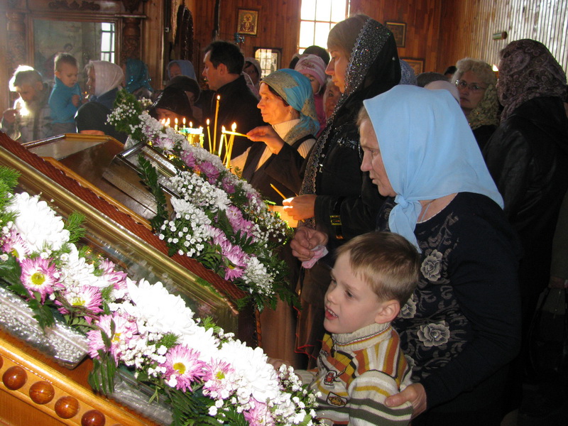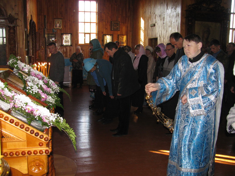Затем в храме перед образом Покрова Пресвятой Богородицы было совершено славление Божией Матери, Нашей Заступнице и Ходатаице перед Господом, по его окончании и.о. благочинного иерей Алексий Анищенко зачитал Послание епископа Усть-Каменогорского и Семипалатинского Амфилохия, в котором Владыка поздравил всех верных с великим праздником Покрова Пресвятой Владычицы нашей Богородицы и Приснодевы Марии и призвал на всех Божие благословение и заступничество Царицы Небесной.