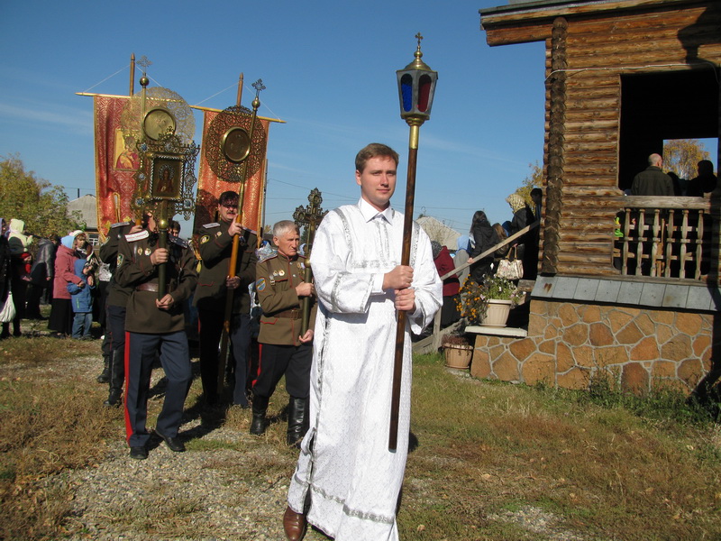 По окончании Божественной Литургии в честь Престольного торжества состоялся Крестный ход вокруг Покровского храма.