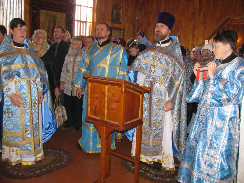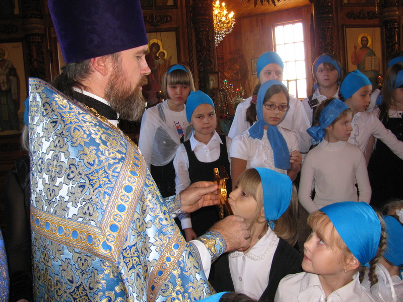 На запричастном стихе проповедывал отец Алексий Анищенко об истории явления Пресвятой Богородицы во Влахернском храме Константинополя в 10-м веке, когда Божия Матерь распростерла над молящимися Свой Честной омофор и спасла город от нашествия врагов, а также - об установлении этого праздника в Русской Православной Церкви и о его великом почитании всем православным народом Божиим.