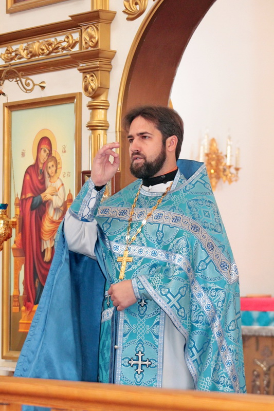 Затем отец Иоанн обратился к богомольцам с проповедью о чудесном явлении Царицы Небесной во Влахернском храме святому Андрею, Христа ради юродивому, который вместе со своим учеником Епифанием увидел идущую по воздуху Пресвятую Владычицу нашу Богородицу, озаренную небесным светом и окруженную Ангелами и сонмом святых. Святой Креститель Господень Иоанн и святой апостол Иоанн Богослов сопровождали Матерь Божию. Преклонив колена, Пресвятая Дева начала со слезами молиться за христиан и долгое время пребывала в молитве, потом, подойдя к Престолу, продолжила Свою молитву, закончив которую, Она сняла со Своей головы блистающее, «паче лучей солнечных» покрывало и распростерла его над молившимися в храме людьми, защищая их от врагов видимых и невидимых.