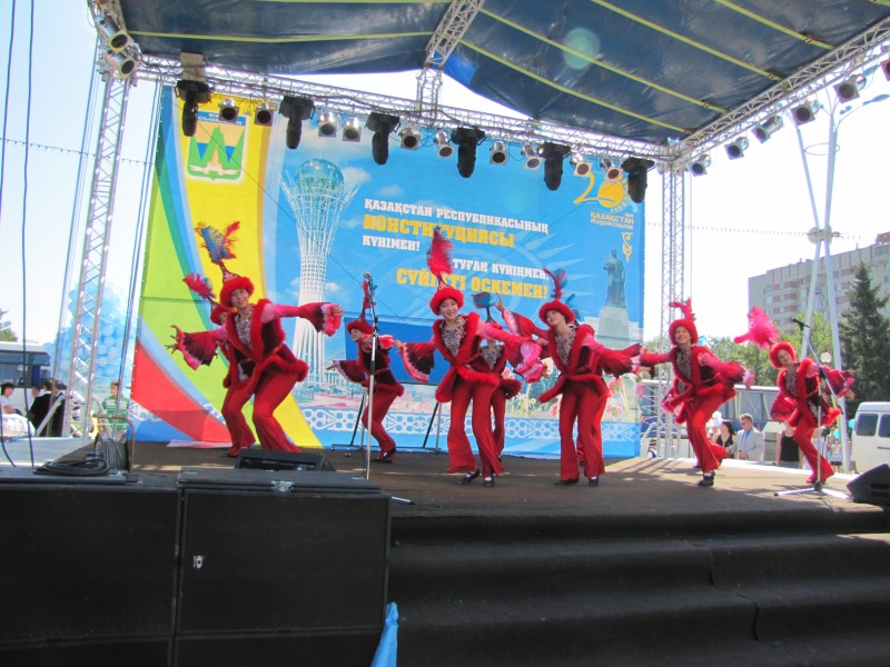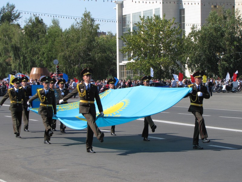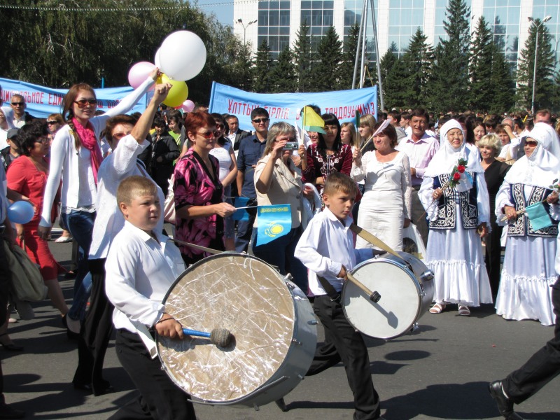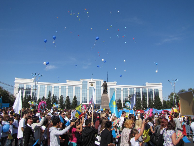 После праздничного шествия состоялось прямое включение из Астаны, где в это время проходил мирный военный парад. Всех граждан в прямом эфире поздравил президент Казахстана Нурсултан Назарбаев.
