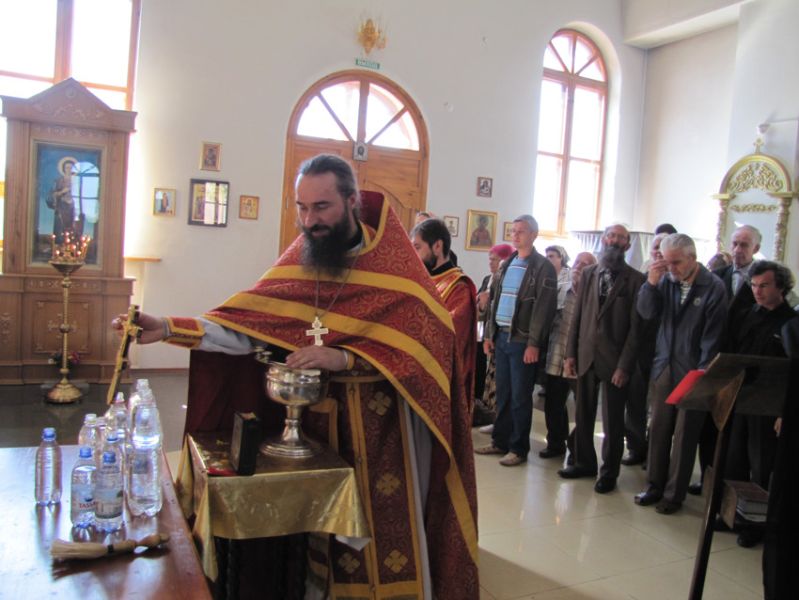 Кроме того, в этот же день в правом пределе собора во имя великомученика и целителя Пантелеимона состоялся водосвятный молебен ко Господу, Пресвятой Богородице и святым угодникам Божиим, который совершил иеромонах Никодим.