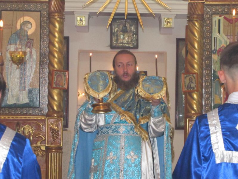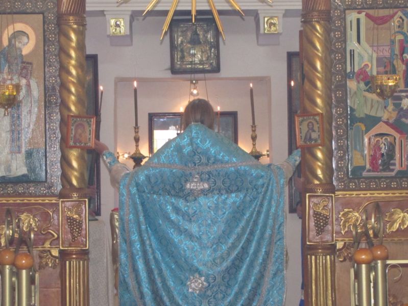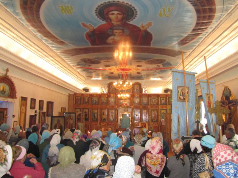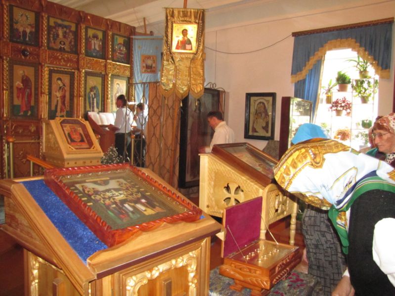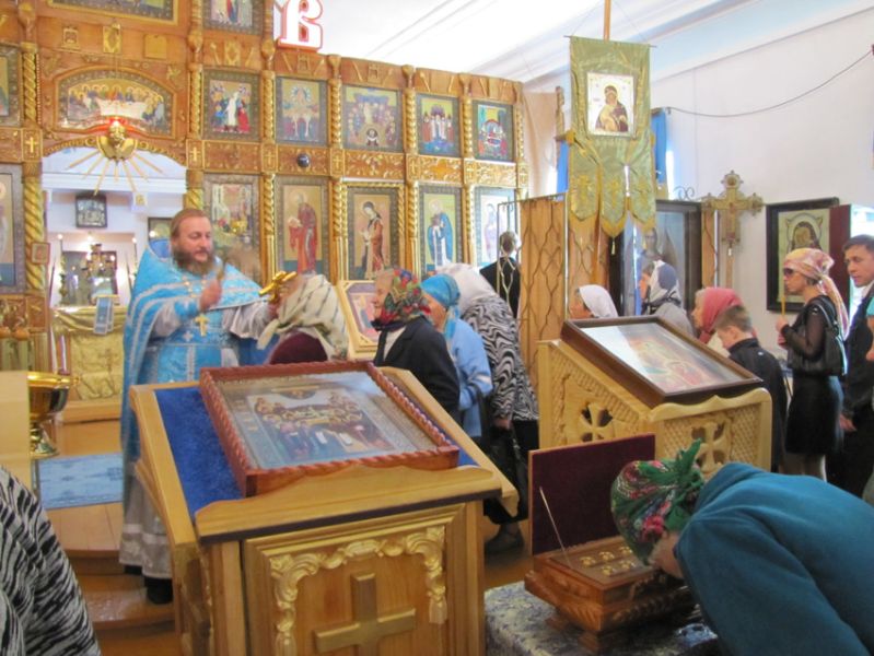 Многие верующие прибыли в этот день с разных приходов Усть-Каменогорского благочиния в Богородице-Рождественский храм, чтобы почтить Пресвятую Богородицу и встретить праздник в храме, названном в честь Ее святого Рождества, а также поздравить прихожан и отца настоятеля Евгения Яганова с престольным праздником и юбилеем прихода и, конечно же, приложиться к пребывающему в храме с 17 сентября по 3 октября 2011 года, по благословению епископа Павлодарского и Усть-Каменогорского Варнавы, ковчегу со святыми цельбоносными мощами святых Оптинских старцев и к местночтимым святыням, которые постоянно находятся в этом храме. А это – ковчег с частицами святых мощей святителя Иннокентия, митрополита Московского, и священномученика протоиерея Владимира Лепсинского, икона с частицей святых мощей святого праведного старца Феодора Томского, чтимая икона Божией Матери «Знамение», список с Абалацко-Семипалатинской, местночтимая икона Божией Матери «Достойно есть», на стекле киота которой чудесным образом отобразились лики Господа и Пресвятой Богородицы и узор с ткани, украшающей икону.
