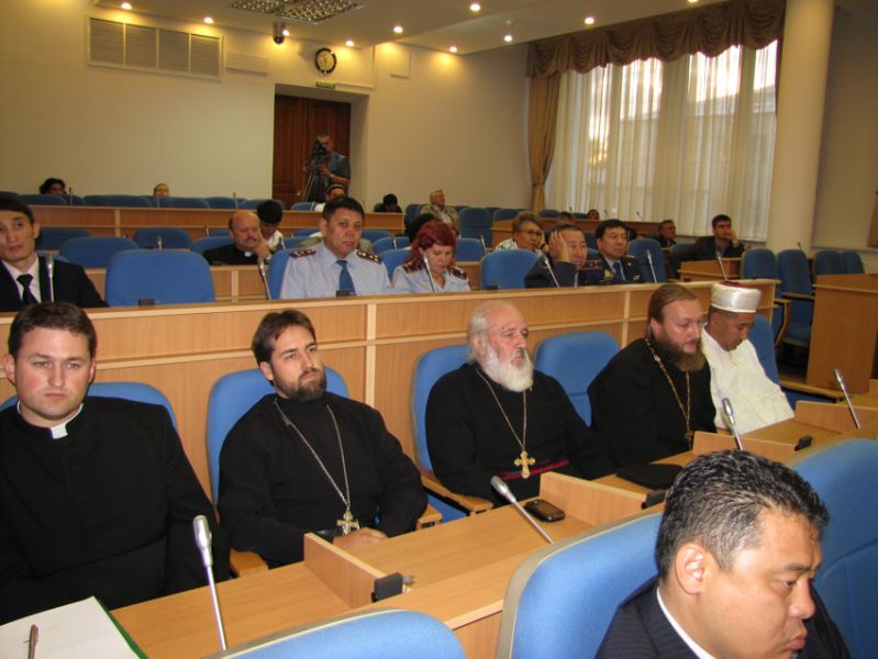 В двух этих заседаниях от Русской Православной Церкви по благословению Преосвященнейшего Варнавы, епископа Павлодарского и Усть-Каменогорского, приняли участие: благочинный Усть-Каменогорского церковного округа, и.о. наместника Свято-Троицкого мужского монастыря архимандрит Иосиф (Еременко), благочинный Семипалатинского церковного округа, настоятель Воскресенского собора г. Семипалатинска митрофорный протоиерей Феодор Проскурин, настоятель Богородице-Рождественского храма пос. Аблакетка иерей Евгений Яганов и настоятель Стефаниевского храма села Предгорное иерей Иоанн Карабидович.