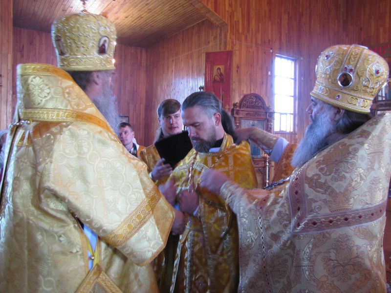 На Малом входе епископ Варнава удостоил иерархических наград: правом ношения наперсного креста и камилавки настоятеля Покровского храма г.Усть-Каменогорска иерея Алексия Анищенко.