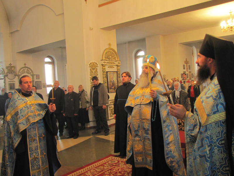 Затем на утрене после целования праздничной иконы «Покрова Пресвятой Богородицы» архимандрит Иосиф совершил помазание освященным елеем всех молящихся в соборе людей.