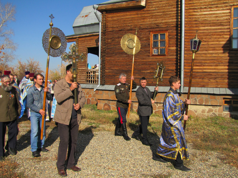 По окончании Божественной Литургии в честь престольного праздника Покрова Пресвятой Богородицы состоялся Крестный ход вокруг Покровского храма.