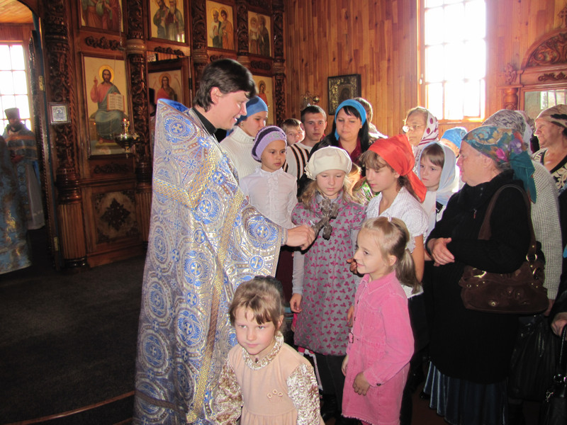 В завершение праздничного богослужения воспитанники Воскресной школы выступили перед духовенством и прихожанами с небольшой литературно-музыкальной композицией, посвященной празднику Покрова Пресвятой Богородицы.