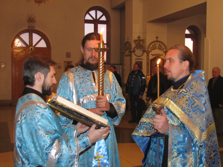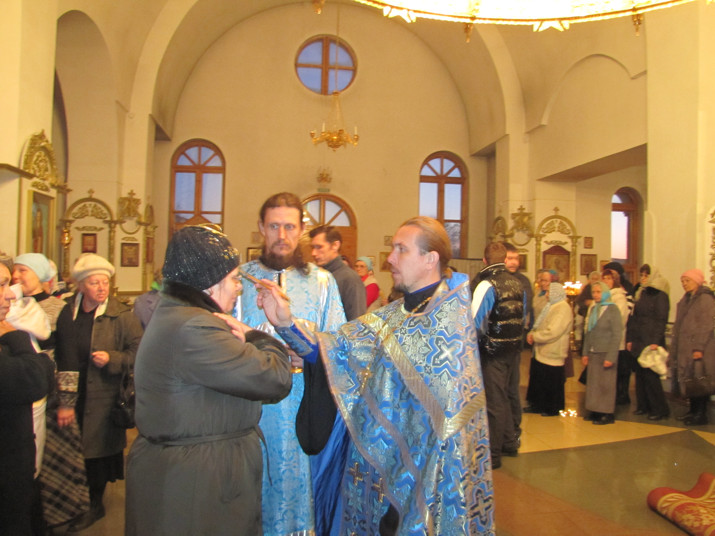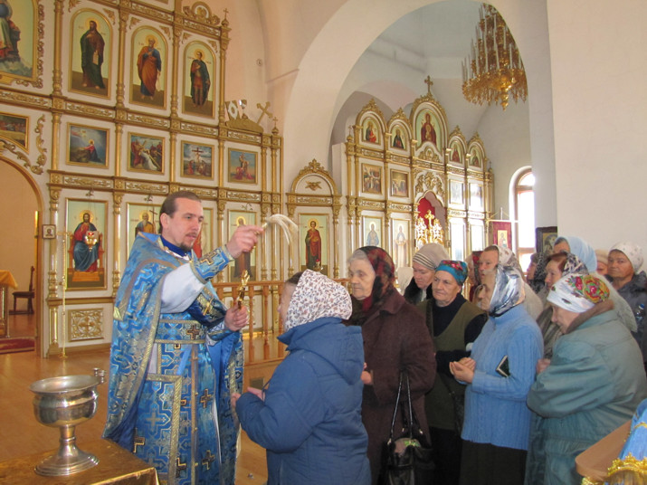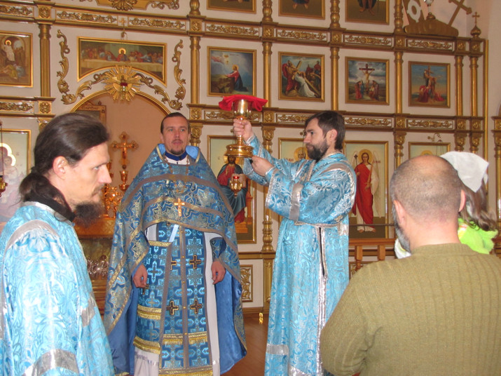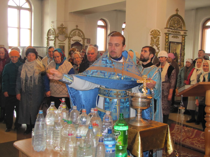 По окончании Литургии состоялся водосвятный молебен ко Господу, Царице Небесной и всем святым.