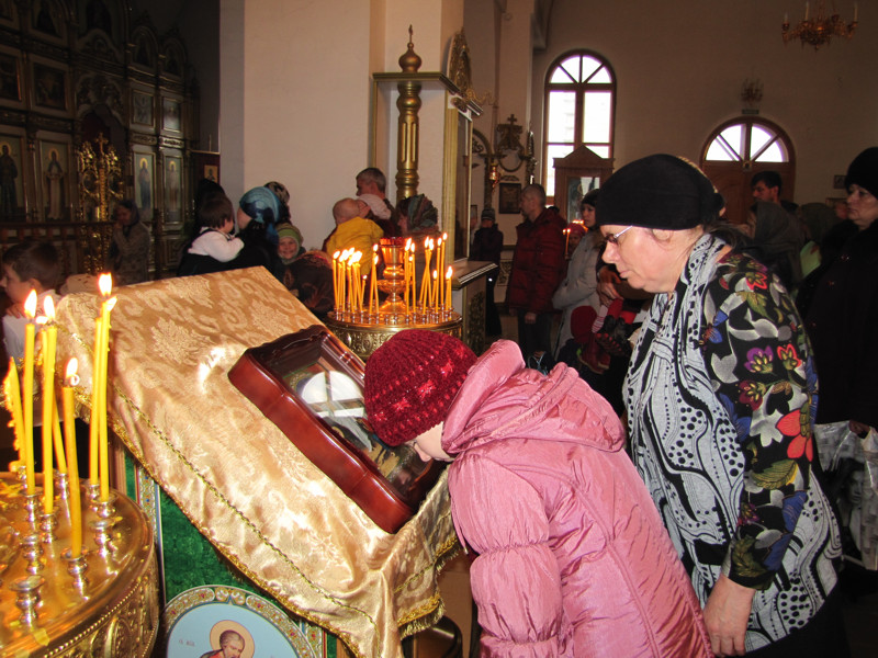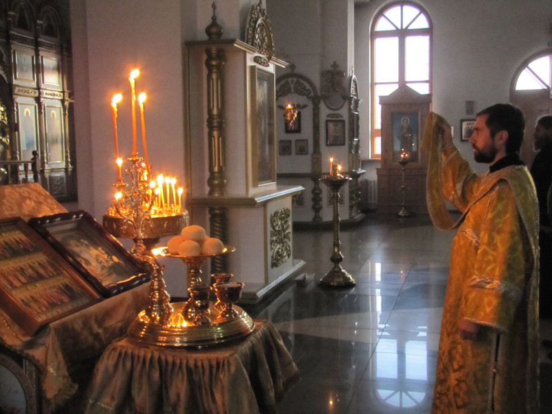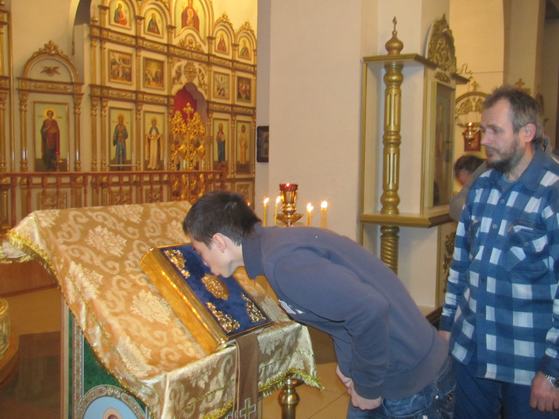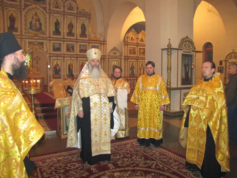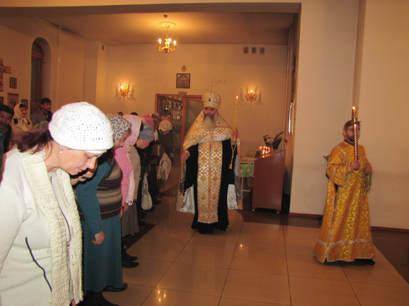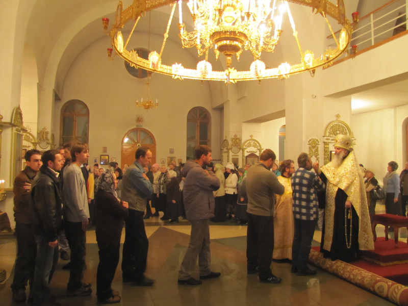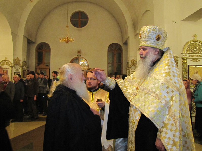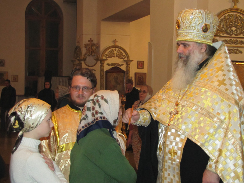 Накануне, в субботу вечером, было совершено Всенощное бдение, во время которого из алтаря для поклонения верующих было вынесено и установлено на центральный аналой напрестольное Евангелие. Затем все богомольцы были помазаны освященным елеем.