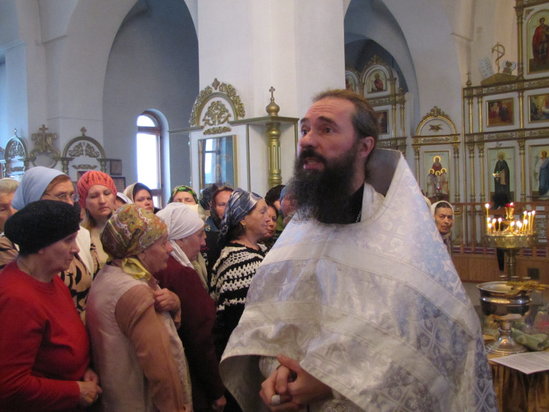 Затем иеромонах Никодим обратился к собравшимся с проповедью, в которой объяснил верующим смысл прочтенного отрывка из Евангелия об исцелении Иисусом Христом в стране Гергесинской двух человек, одержимых бесами и живших в пещерах, в которых погребали усопших. Когда Иисус изгнал из них бесов, то бесы стали Его просить, чтобы Он позволил войти им в стадо свиней, которое затем бросилось с крутизны в море и погибло в воде. Однако жители этого города, узнав об этом, вместо благодарности в страхе «просили, чтобы Он отошел от пределов их» (Мф.8;28-34).