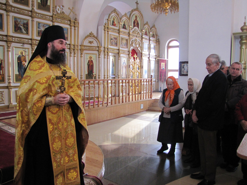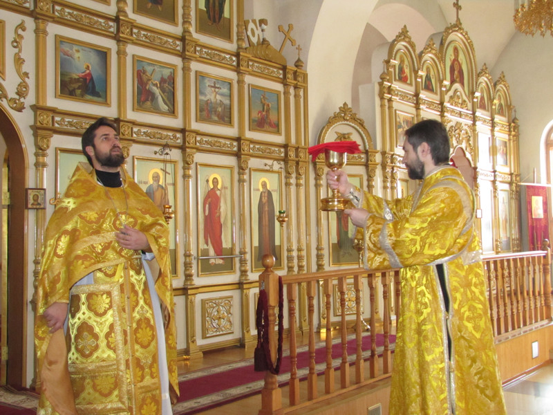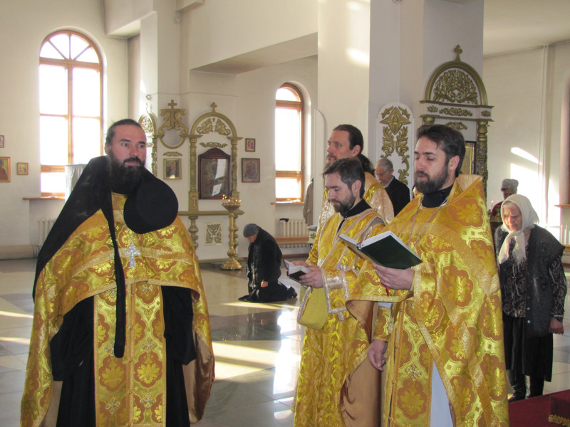 Возглавил богослужения иерей Иоанн Карабидович, настоятель Стефаниевского храма с. Предгорное. Ему сослужили: иеромонах Никодим (Авдеев) и диакон Андрей Лебединский.