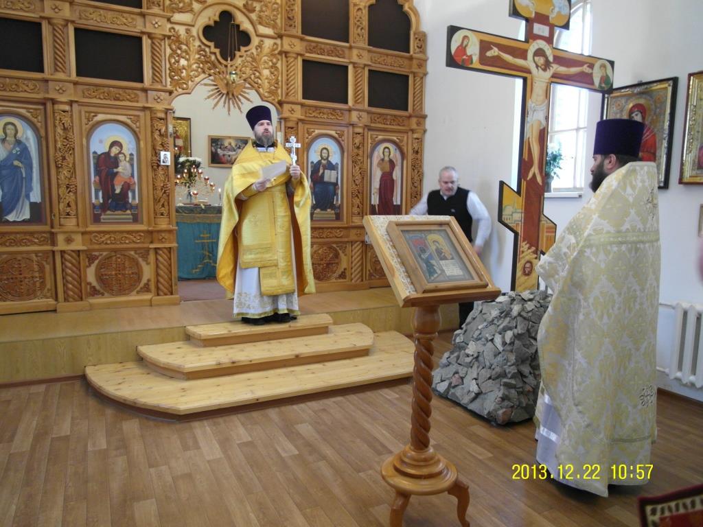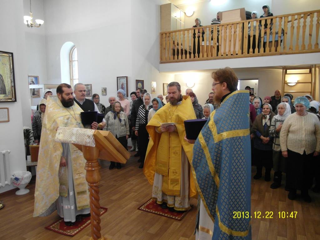 Накануне вечером, 21 декабря, по благословению Преосвященнейшего Епископа Усть-Каменогорского и Семипалатинского Амфилохия, в Храме в честь иконы Божией Матери «Нечаянная Радость» города Риддера Всенощное бдение и праздничную Божественную Литургию совершил благочинный Усть-Каменогорского церковного округа – иерей Алексий Анищенко в сослужении настоятеля прихода иерея Андрея Москаленко и иеромонаха Ксенофонта (Нурмухаметова), клирика Свято-Никольского храма города Риддера.