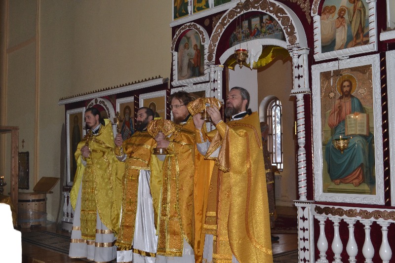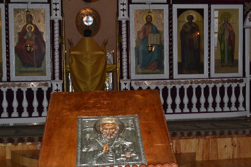 По окончании Божественной Литургии состоялось славление святителю Николаю перед его чтимым образом. В завершение богослужения иерей Алексий Анищенко вознес молитву к святителю Христову Николаю, после чего огласил Приветственное послание Преосвященнейшего Епископа Амфилохия настоятелю, духовенству и всем прихожанам Никольского храма.