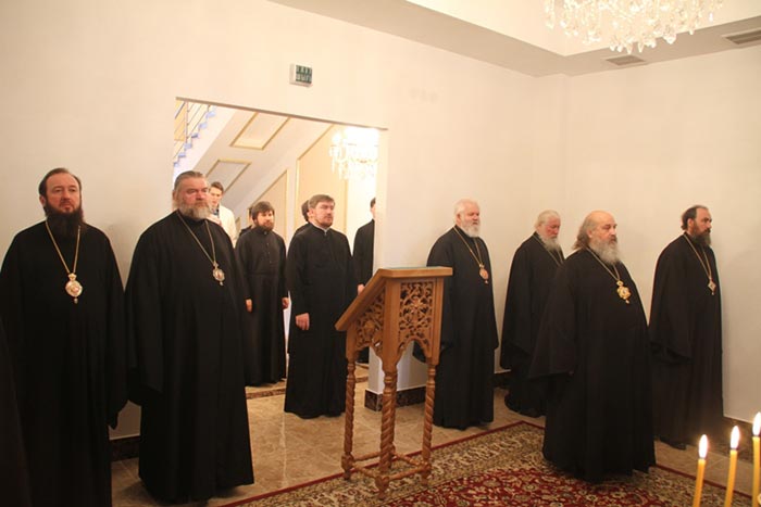 Перед началом заседания митрополит Александр приветствовал Преосвященных владык вступительным словом.