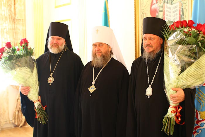 Глава Православной Церкви Казахстана и члены Синода поздравили с днем рождения епископа Анатолия, отмечающего свое с 55-летие, и епископа Севастиана.