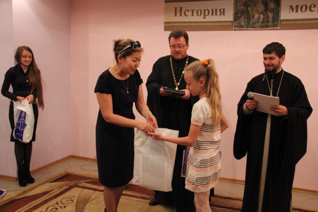 В перерыве всем собравшимся была представлена возможность посмотреть на большом экране запись Пасхального утренника Центральной воскресной школы. Закончился конкурс подведением итогов и обнародованием результатов решения жюри. Все участники были так или иначе награждены за участие в конкурсе, коллективы и руководители воскресных школ города получили сертификаты, каждая работа была отмечена грамотой и памятными призами. Первое место получила семья Чайковских за свой фильм, который наиболее соответствовал тематике конкурса.