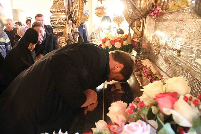 В Кафедральном соборном Храме Христа Спасителя паломники поклонились частице Ризы Господа Иисуса Христа и частице Ризы Пресвятой Богородицы; мощам святителя Филарета (Дроздова) митрополита Московского; главе святителя Иоанна Златоуста; ковчегу с мощами Предтечи и Крестителя Господня Иоанна, равноапостольного Великого князя Владимира, благоверного Великого князя Александра Невского, святителя Ионы, митрополита Московского, и иных чтимых святых.