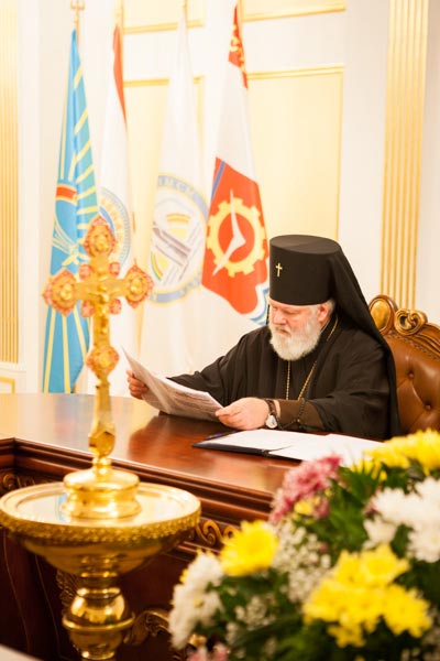 Митрополит Астанайский и Казахстанский Александр выступил с сообщением о праздничных богослужениях и торжественных мероприятиях, посвященных 1025-летию Крещения Руси, прошедших на церковно-государственном уровне в России, на Украине и в Белоруссии. Владыка митрополит рассказал о своих паломничествах к святыням Русской Православной Церкви и о визитах в епархии России и страны ближнего зарубежья, состоявшихся в летний период 2013 года по благословению Святейшего Патриарха Московского и всея Руси Кирилла.