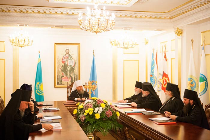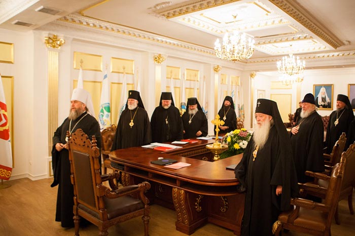 Заседание было открыто общей молитвой в Синодальном домовом храме в честь Астанайской-Почаевской иконы Божией Матери, после которой митрополит Александр приветствовал архипастырей вступительным словом.