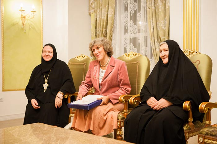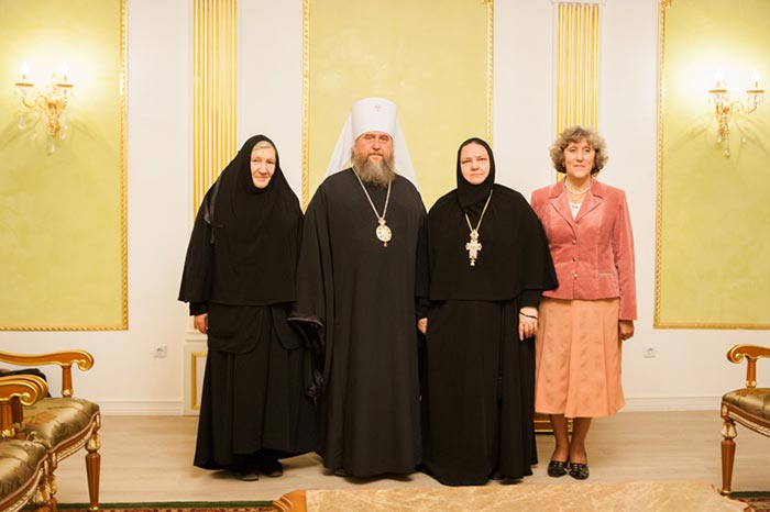 По окончании заседания Синода митрополит Астанайский и Казахстанский Александр в духовно-культурном центре имени равноапостольных Кирилла и Мефодия встретился с представительницами Покровского Верхотурского женского монастыря Екатеринбургской митрополии - монахиней Агнией (Савельевой) и референтом обители М.И. Сащиной.