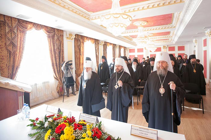 После общей молитвы перед началом работы с приветственным словом к собравшимся обратился митрополит Астанайский и Казахстанский Александр.