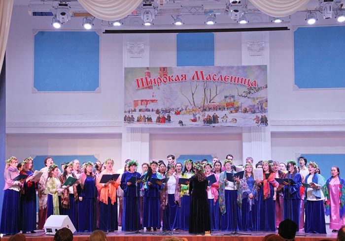 Ведущие концерта подробно рассказали собравшимся о духовном значении сырной седмицы и о народных обычаях масленицы.